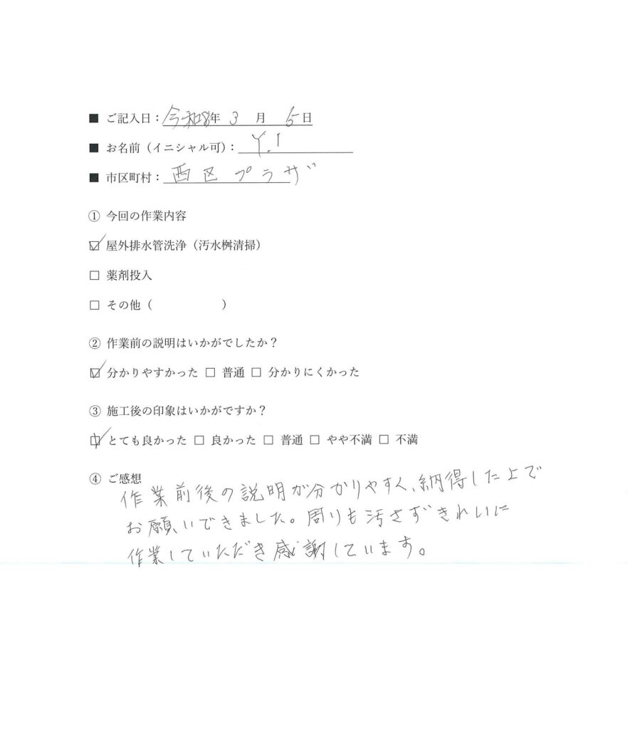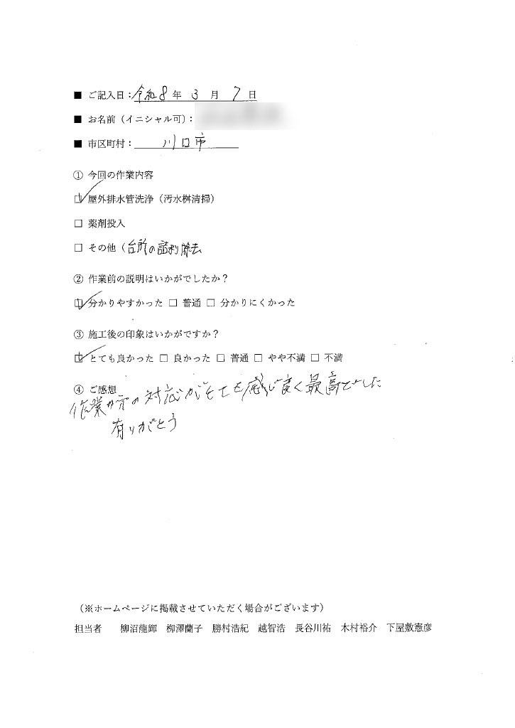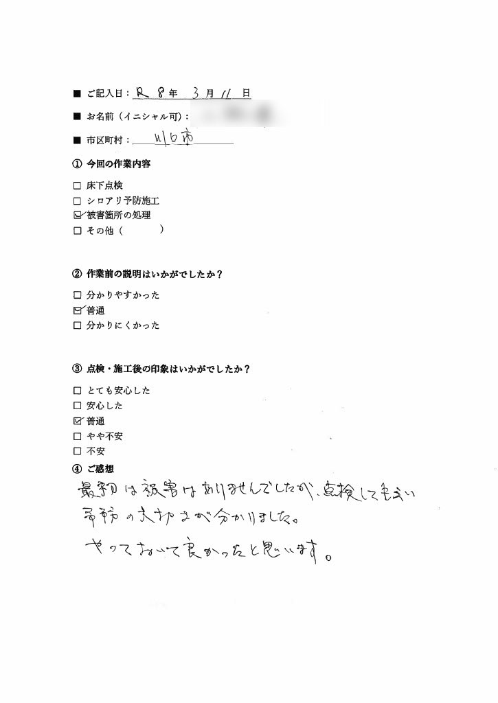 ※シロアリ駆除・配管クリーニングを含む、当社の施工をご利用頂いたお客様の声です。