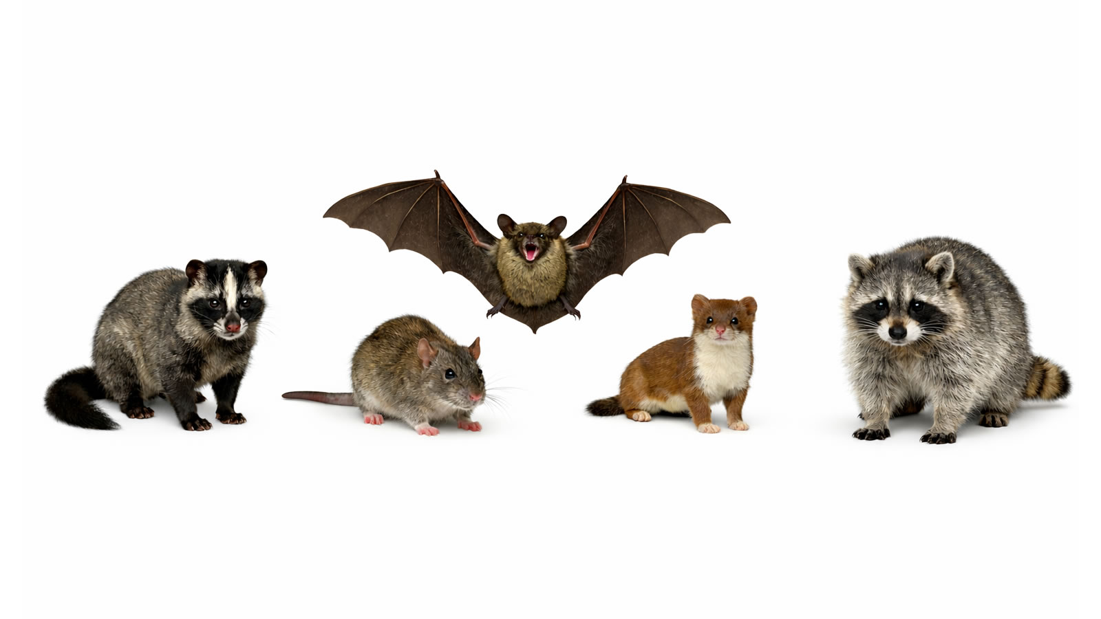 ハクビシン、ネズミ、コウモリ、イタチ、アライグマなど、さまざまな種類に対応しています。