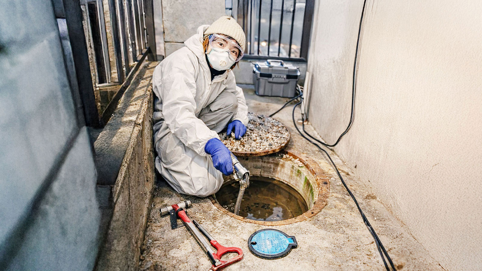 屋外の排水桝洗浄と屋内配管洗浄、それぞれの手順で丁寧に作業を行います。