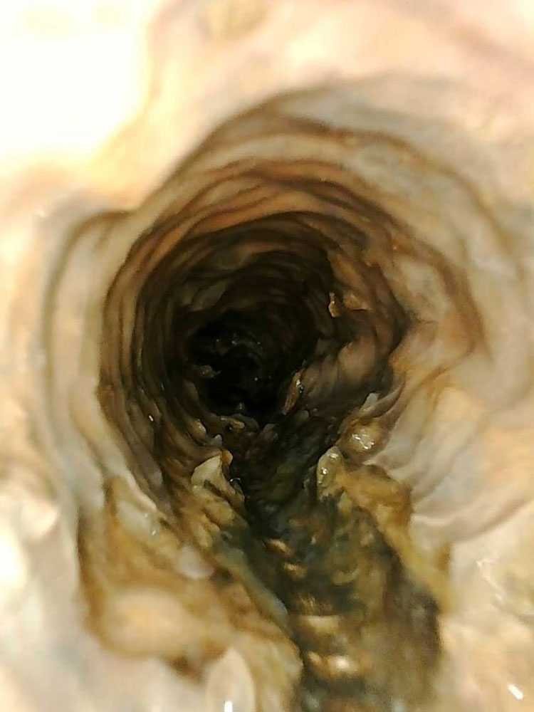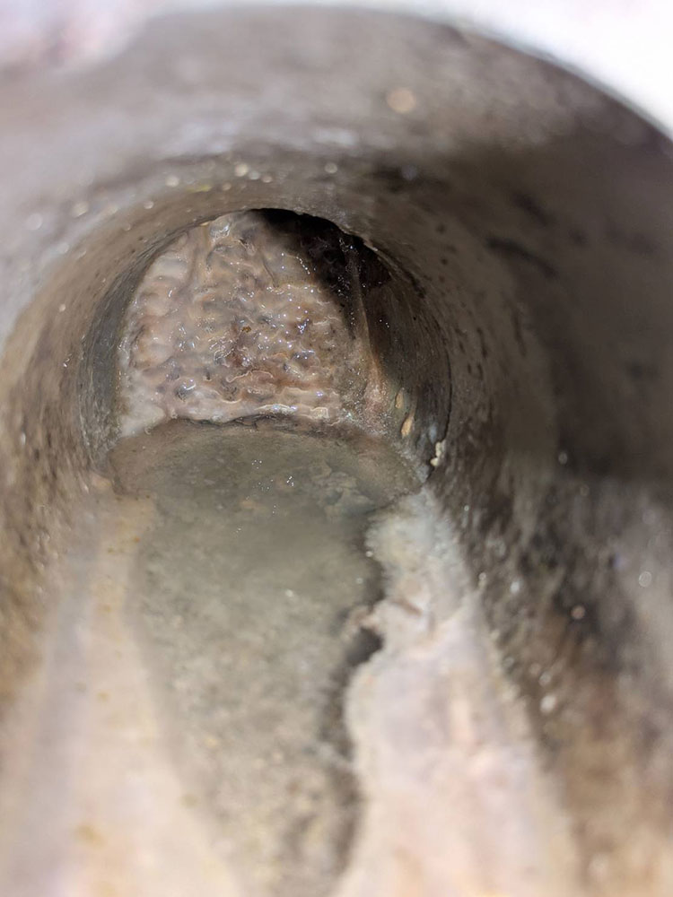 排水管の内部には、油汚れ・石けんカス・髪の毛などが少しずつ蓄積していきます。