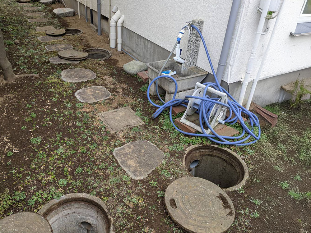 台所・浴室・洗面台・洗濯排水などの屋内配管だけでなく、屋外の排水桝も洗浄します。