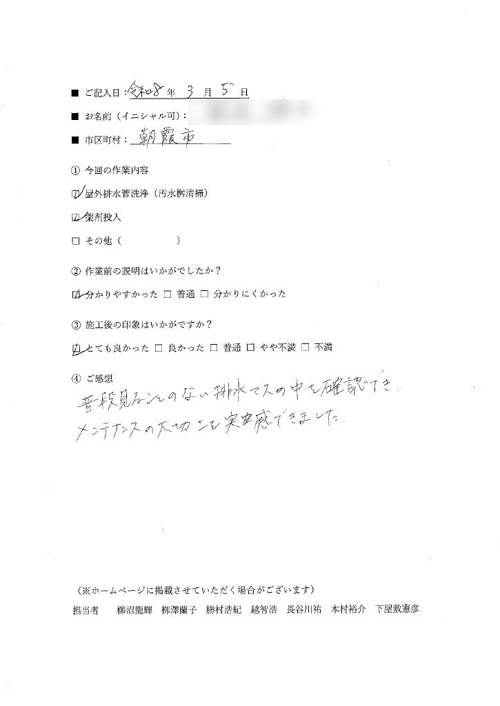 ※シロアリ駆除・配管クリーニングを含む、当社の施工をご利用頂いたお客様の声です。