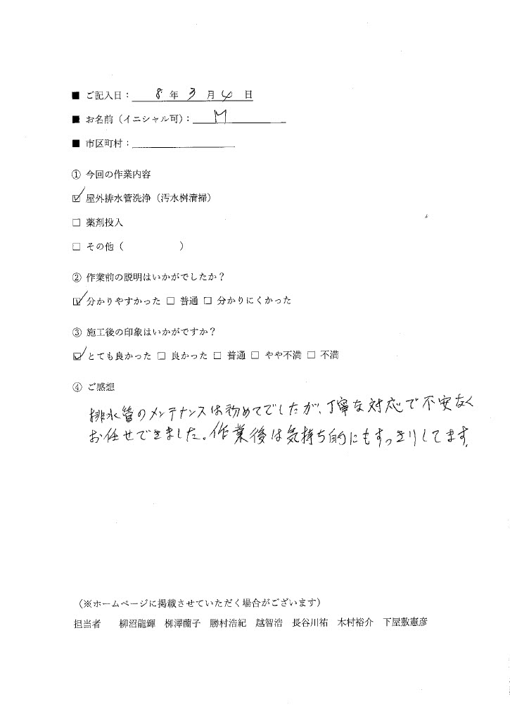 配管クリーニングをご利用いただいたお客様の声を掲載します。