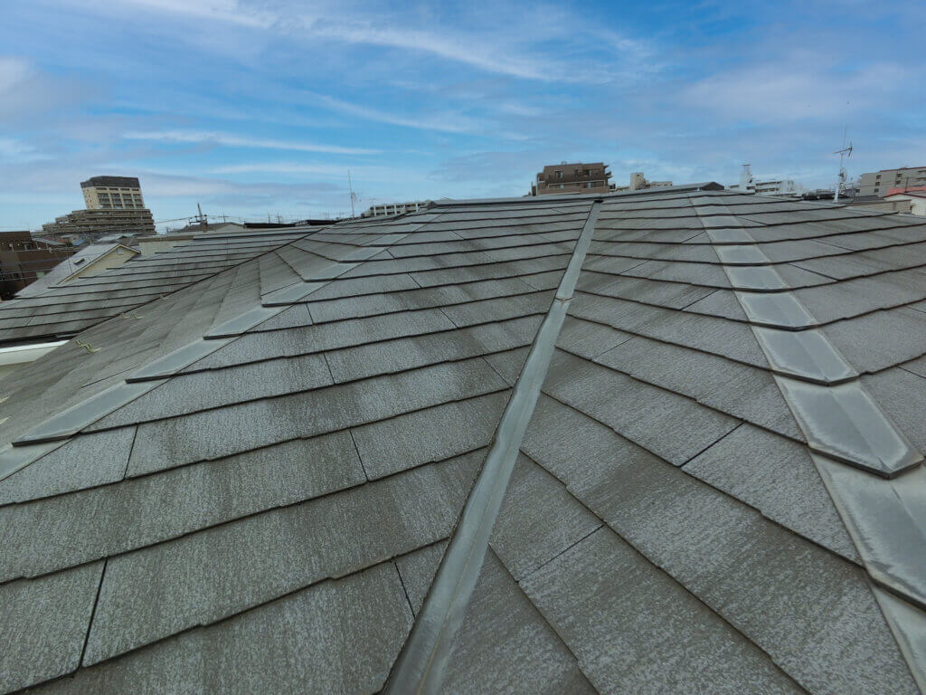 今回は同系色での屋根塗装でした。同系色での塗装でも、新築の用のがらりと雰囲気が変わり施主様に喜んでいただけました。