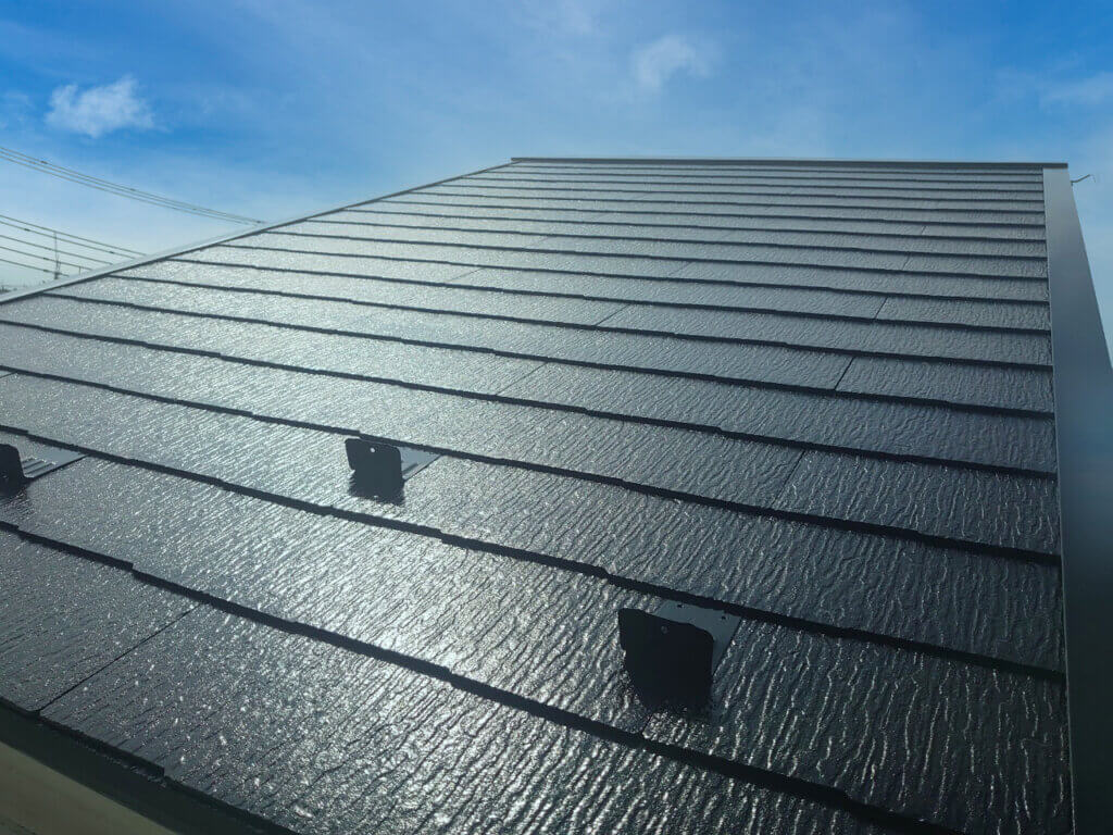 今回は同系色での屋根塗装でした。同系色での塗装でも、新築の用のがらりと雰囲気が変わり施主様に喜んでいただけました。